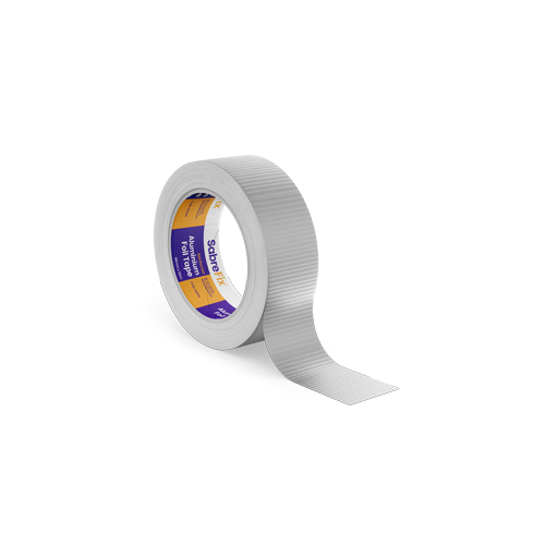 Reinforced aluminium foil tape with a high-performance rubber resin adhesive, protected by an easy-release silicone release paper.